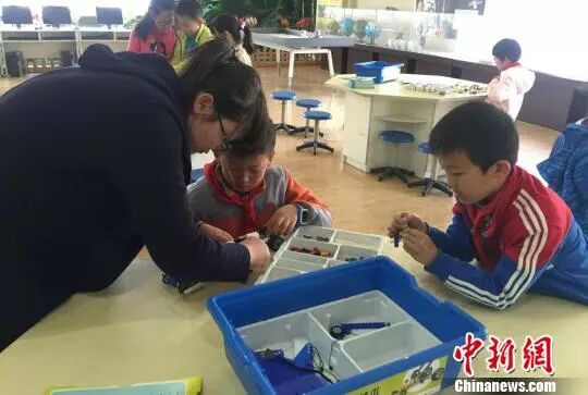 △ 圖為甘肅蘭州小先生下學後玩樂高機械人。(中新網包養網推薦記者劉玉桃攝)